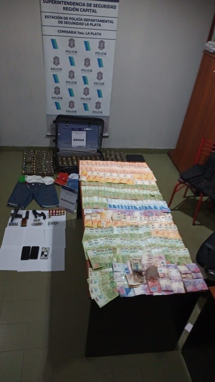 En el lugar también se encontró valija color negra con 80 frascos de cogollos de marihuana y la suma de 152.000 de pesos en efectivo, todo lo cual fue incautado y se sumará a la investigación que ya está en curso para determinar si los mismos delincuentes cometieron otros asaltos.