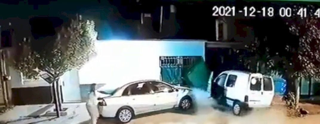 Los efectivos intentan establecer la identidad del delincuente a través del estudio de las imágenes de las cámaras de seguridad. En tanto, la camioneta sufrió daños en la carrocería mientras que la vivienda registró severos daños materiales en el frente.