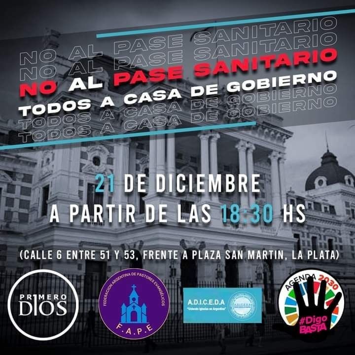 La protesta está encabezada por un grupo de organizaciones asociadas: la Alianza de Iglesias Cristianas Evangélicas de Argentina (ADICEDA), la Federación Argentina de Pastores Evangélicos (FAPE), el grupo Primero Dios y la coalición Digo Basta contra la Agenda 2030 para el Desarrollo Sostenible de la Organización de las Naciones Unidas (ONU).