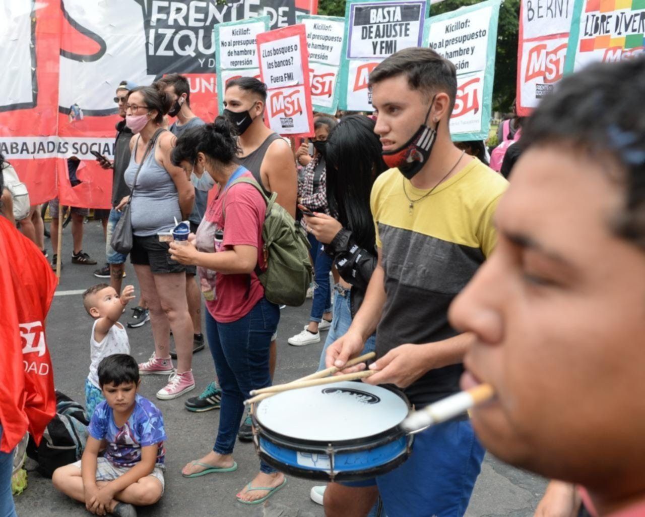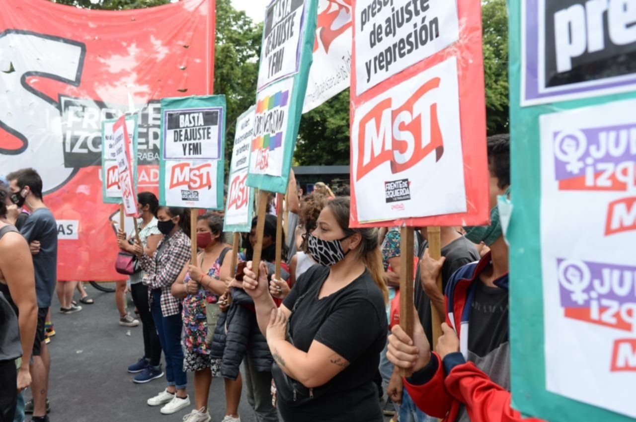 Militantes referenciados con el Partido Obrero (PO), el Movimiento Socialista de los Trabajadores (MST), el Frente de Izquierda y otras agrupaciones políticas de la izquierda se hicieron sentir con bombos, banderas, pancartas y cantos en pleno centro de platense.