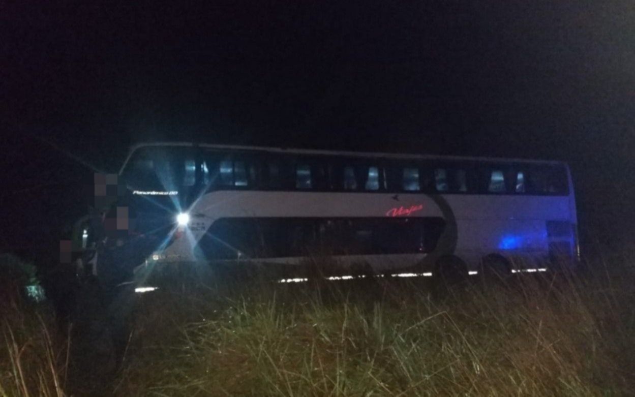 En la madrugada de este lunes un colectivo que llevaba casi cuarenta personas protagonizó un accidente al salir de la traza y terminar en medio de un campo.