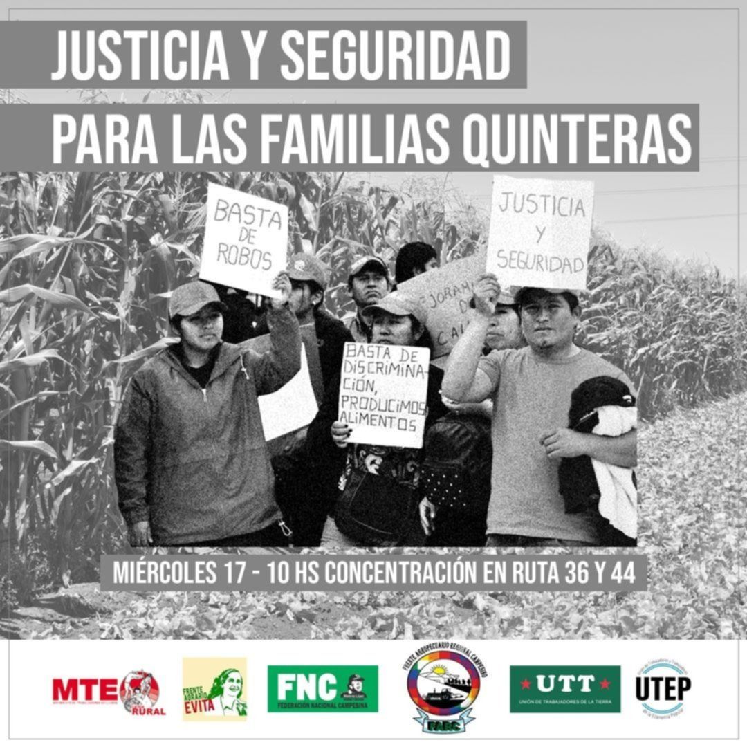 "Por esto, las organizaciones convocantes volvemos a exigir patrullaje real en toda la zona quintera; cambio de personal en las comisarías cómplices; alumbrado público como en el centro de la ciudad; arreglo de calles y caminos rurales; recolección de residuos y señalización para que pueda llegar la Policía cuando se denuncia; oficinas para recibir denuncias porque en la comisaría no las toman y discriminan; registro único de camiones que cargan verduras; garitas de control policial; y alarmas zonales. Es tiempo de que se respete, se valore y se proteja a quienes producen buena parte de los alimentos sanos, frescos y a bajo costo para la mesa de las y los argentinos", completaron.