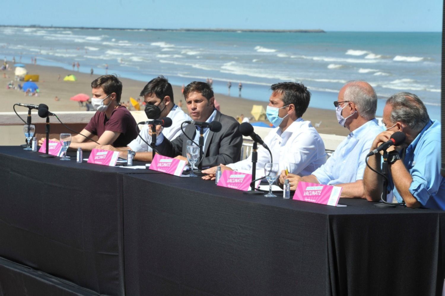 El gobernador Axel Kicillof encabezó desde Necochea una conferencia de prensa sobre la situación epidemiológica y la marcha de la campaña de vacunación, en medio del escándalo desatado en el Ministerio de Salud de la Nación por el denominado "vacunatorio VIP". Ocurre después de una reunión que el mandatario tuvo con intendentes de la zona.