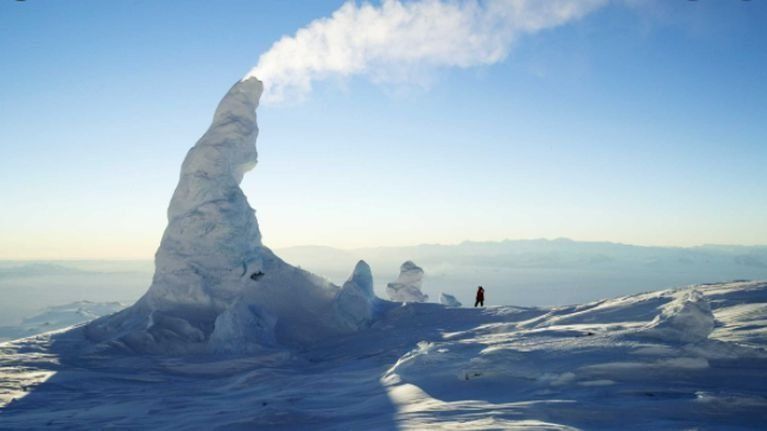 VOLCÁN ANTÁRTICO Y SUS TUBOS DE NIEVE