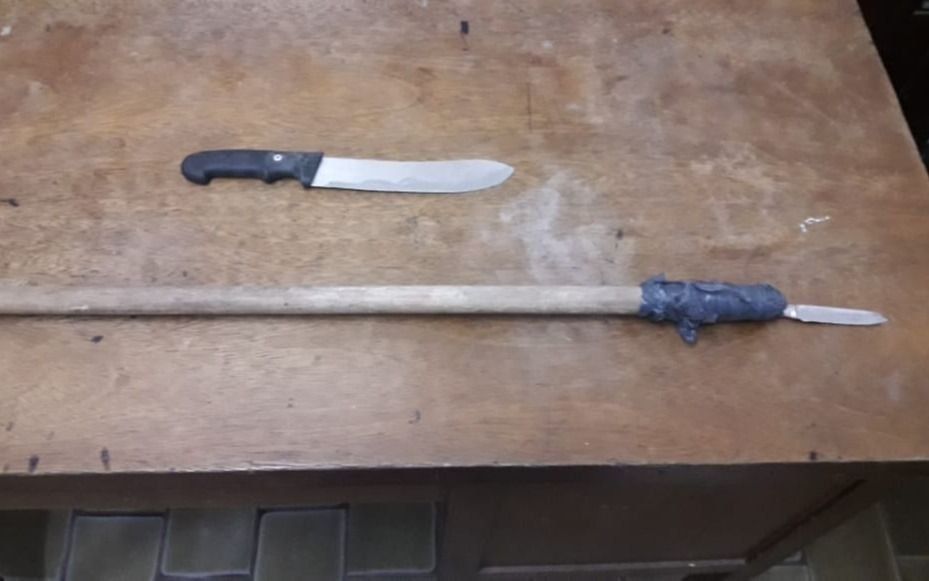 Minutos después, personal de seguridad arribó al lugar y encontró al acusado en medio de la calle: estaba armado con un cuchillo y un palo, con los que amenazaba de muerte e invitaba a pelear a un hombre de 42 años, padrastro de su novia.