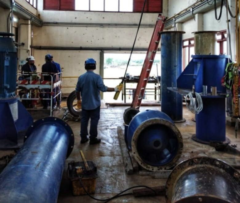 En medio de las quejas, la empresa ABSA informó que su personal continúa con el montaje de una de las bombas que eleva el agua cruda desde el Río de La Plata hasta la Planta Potabilizadora "Donato Gerardi" en Punta Lara.