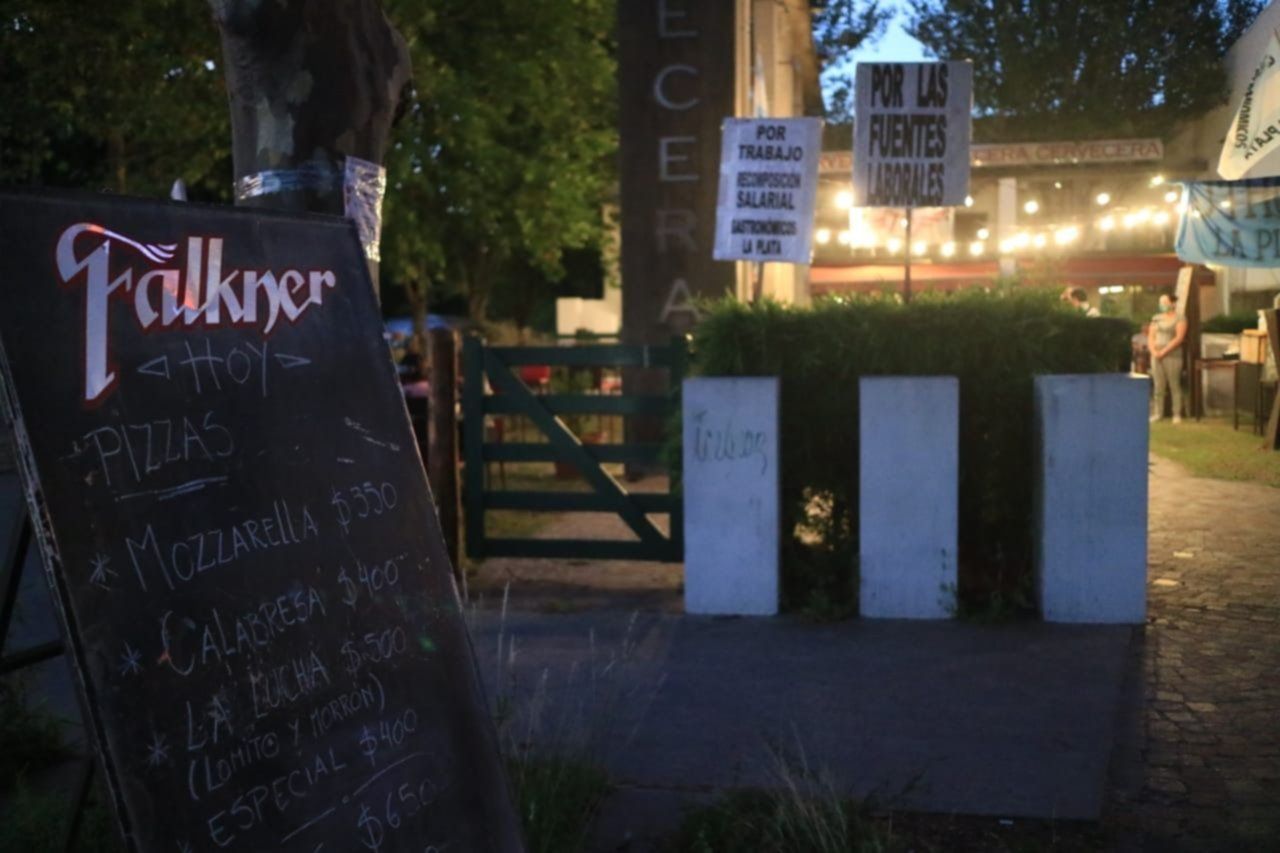 En medio de la toma, los trabajadores de la Cervecería Falkner reabrieron las puertas para vender pizzas, papas y cervezas en el patio del local de 44 y 136. El objetivo de la medida, que en las primeras horas tuvo muchas presencia de clientes, es juntar dinero y donarlo a las familias, quienes están atravesando un momento delicado por el retraso en el pago de salarios.
