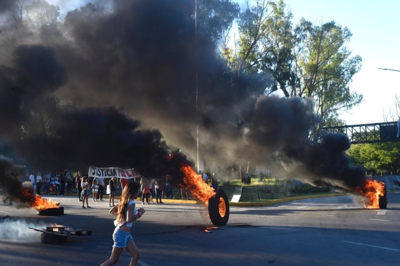La concentración cortó con gomas incendiadas el acceso a la Autopista La Plata Buenos Aires, lo cual originó serios trastornos de tránsito para quienes intentaban salir de la ciudad.