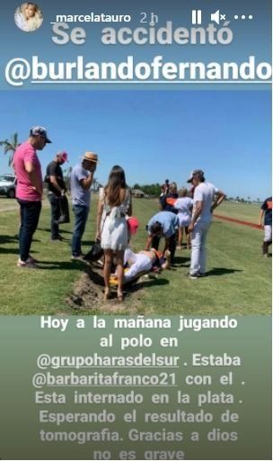 La primera imagen de Fernando Burlando accidentado en medio de un partido de polo se conoció este domingo a la tarde después de que una foto que lo muestra tendido en al campo de juego y rodeado por otros jugadores y allegados, poco antes de ser trasladado al Instituto Médico Platense.