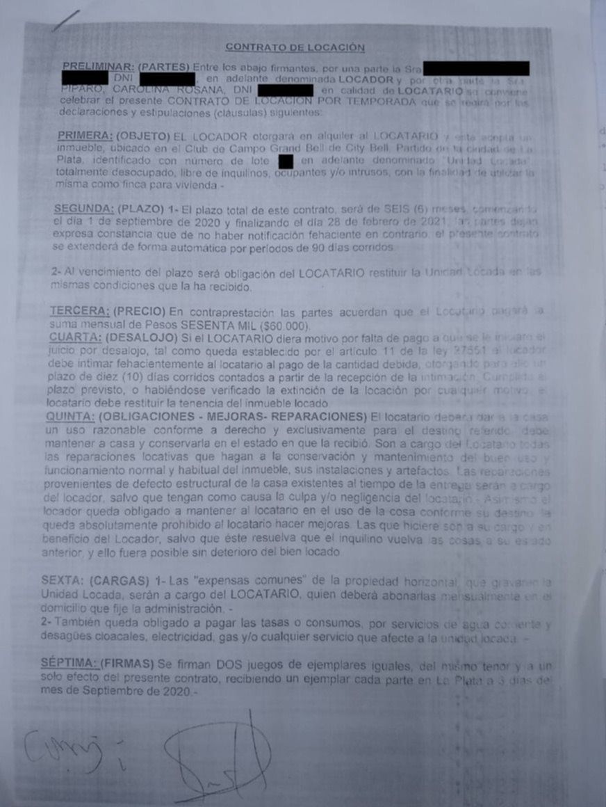 El contrato, sin embargo, llamó la atención por varios motivos. En el mismo "no figuran garantías ni se establecieron cláusulas de actualización del alquiler, que son requisitos básicos para contratos de este tipo", señalaron fuentes del caso con acceso al expediente.
