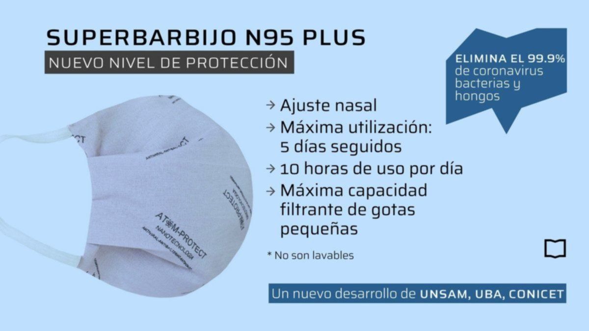 El innovador tapabocas fue desarrollado en conjunto con la Universidad de Buenos Aires (UBA) y la Universidad Nacional de San Martín (UNSAM) y contó con el apoyo de la textil Kovi S.R.L. En ese sentido, se precisó que "el barbijo Atom Protect N95 Plus (FFP2) tiene una capacidad filtrante para polvos y gotículas de más del 97%”.