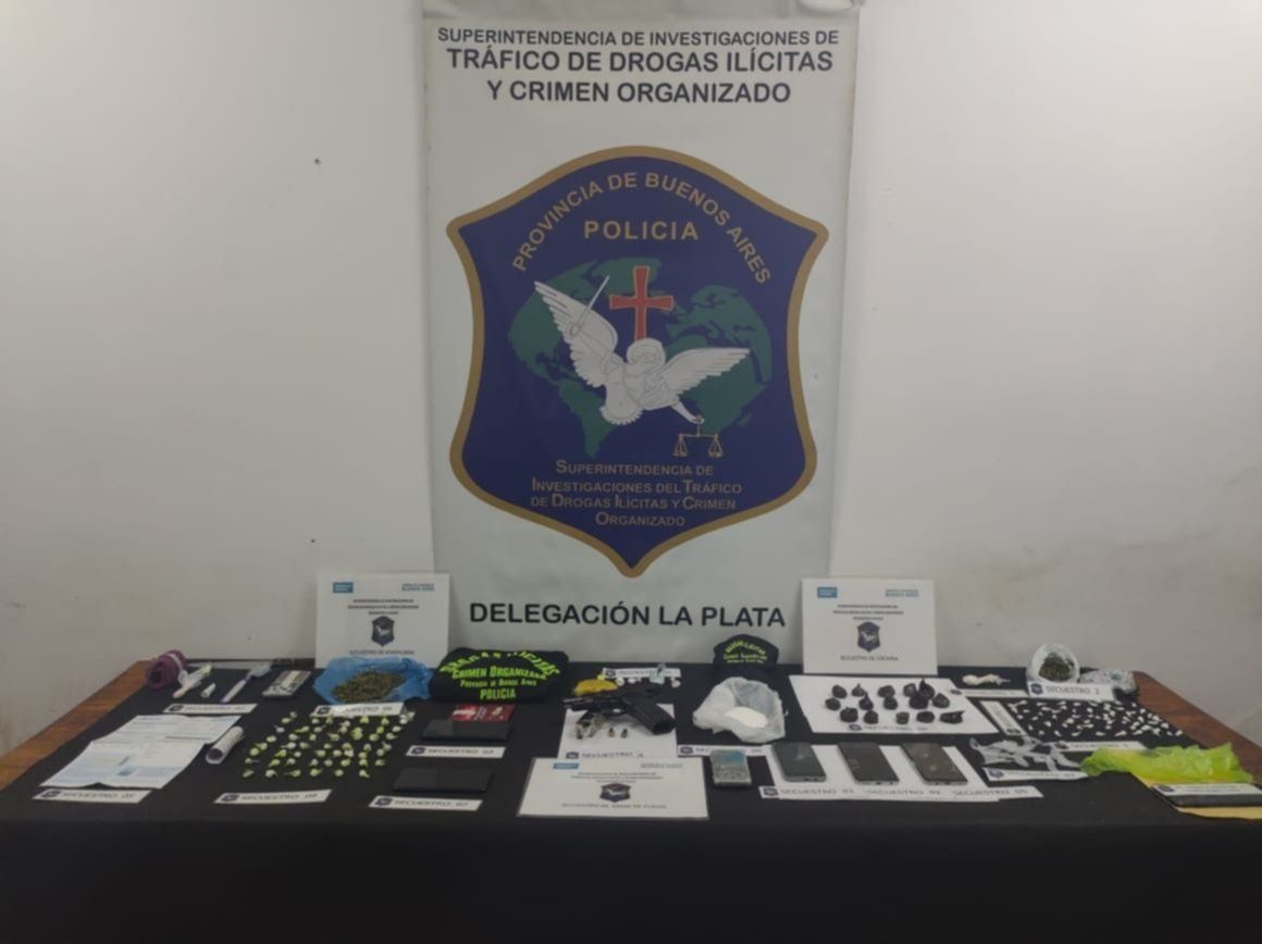 En City Bell encontraron y secuestraron "un monedero que contenía 5 envoltorios de nylon con cocaína en su interior". "Del dormitorio del sindicado se procedió al secuestro de una pistola marca Bersa Thunder con cargador colocado con 14 cartuchos y 1 cartucho en recámara, dos teléfonos celulares y 15 envoltorios de nylon con cocaína. Del comedor se procedió al secuestro de un teléfono celular, una balanza de precisión marca Pocket Scale con vestigios de cocaína, un bolsa conteniendo cocaína y recortes de nylon", añadieron.