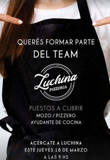 La pizzería Luchina, que funciona desde febrero de 2020 en la estratégica esquina de 6 y 59, lanzó en sus redes sociales una búsqueda laboral para cubrir tres puestos. Los interesados podrá concurrir al local este jueves a partir de la 9.