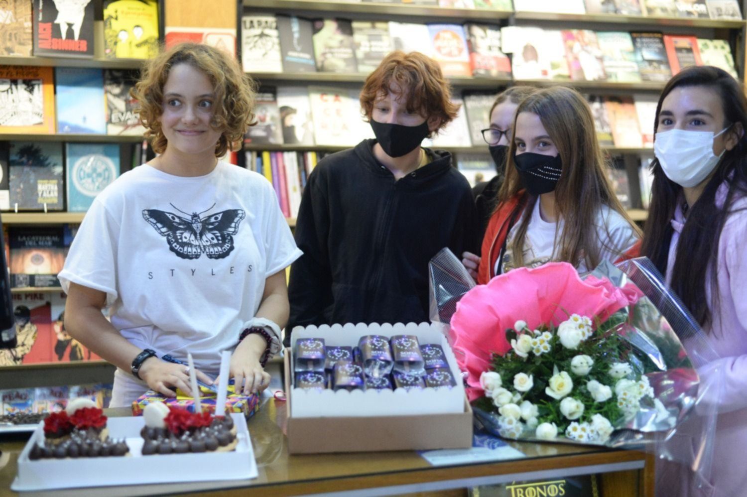 Ese fue el puntapié inicial de todo lo que estaba por venir: pistas, recorrida por todos los rincones de la librería, torta, souvenirs y video llamadas con sus familiares. Nadie se quiso perder esta ocasión tan especial para la joven. "Me sorprendió mucho todo lo que pasó, hasta hablé por video llamada con familiares que viven en Neuquén que no los veo hace un montón y la verdad que los extrañaba mucho", contó.