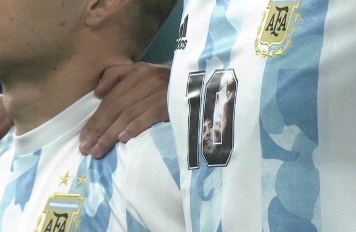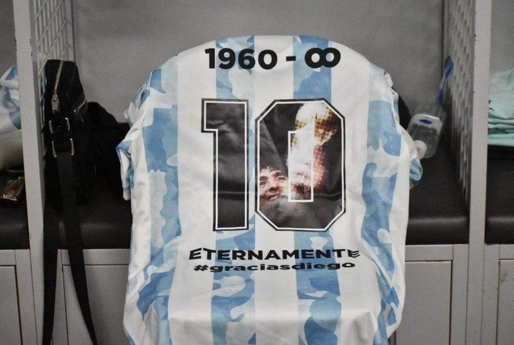 Argentina estrenó modelo de camiseta y lució una especial, con homenaje al astro campeón del mundo. En el pecho, el número emblemático y con el diseño de 1986. Atrás, el mismo 10 pero más grande y con Maradona levantando la copa. Arriba, un 1960 y el símbolo de eterno. Abajo: "Eternamente #graciasDiego". Y de fondo, el celeste y blanco de la bandera que tanto defendió.