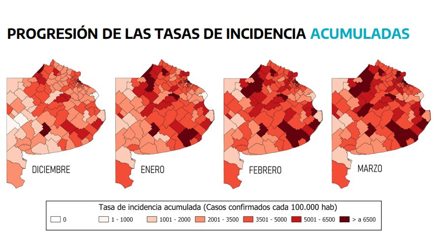 Luego Gollán hizo un detalle de los distintos indicadores sobre la situación sanitaria y remarcó que la explosión de casos afecta principalmente los grandes conglomerados, pero también en el interior bonaerense.