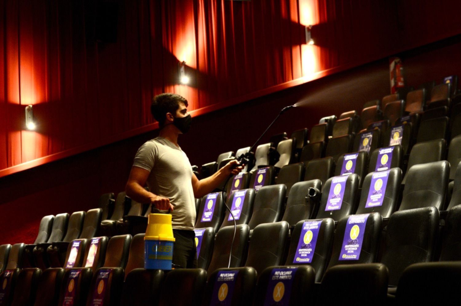 En las salas, el uso del barbijo será obligatorio. Las personas solo podrán quitárselo para ingerir alimentos o bebidas, y se lo deberán volver a colocar después. Antes y después de cada función, todas las salas serán higienizadas y sanitizadas para su uso posterior por otro grupo de personas.
