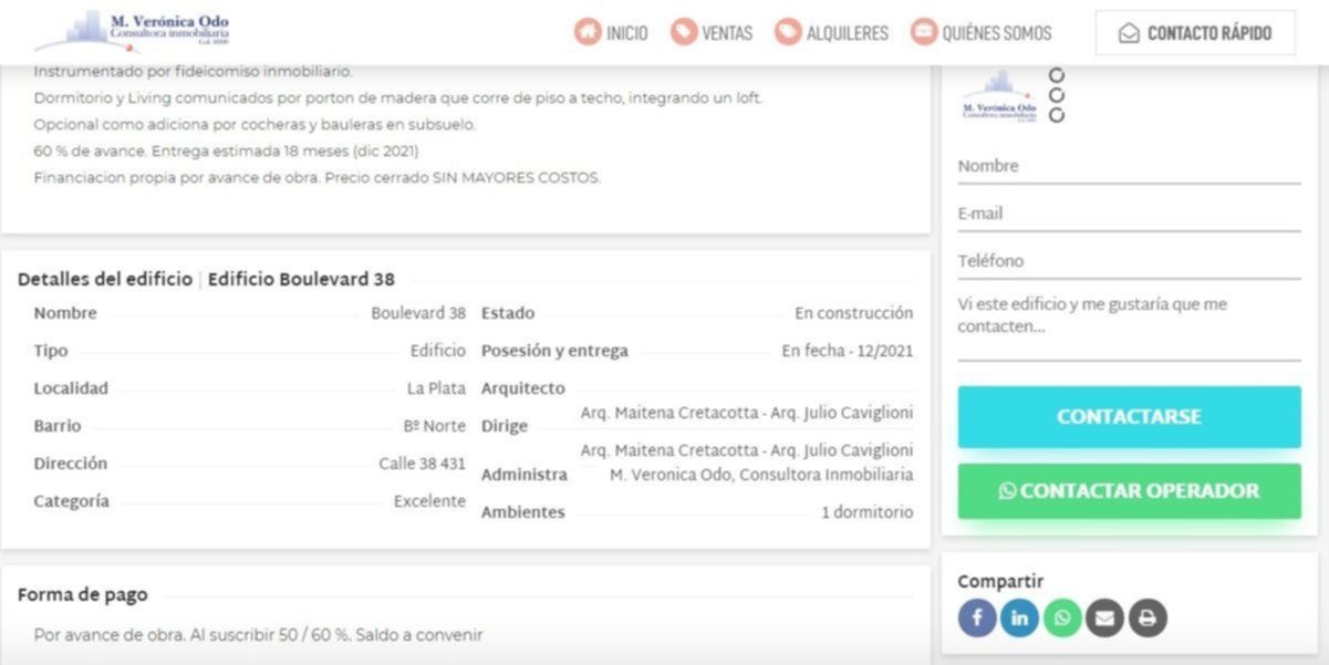 Pese a todo esto los acusados siguen en el rubro inmobiliario. “Mediante el vendedor Rubén Tagliaferro siguen ofreciendo estos departamentos, dicen que los fabrica la empresa Incoar SA y los comercializan en la Consultora Inmobiliaria Verónica Odo”, señaló Arias.