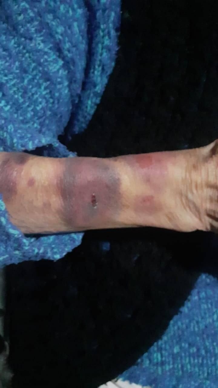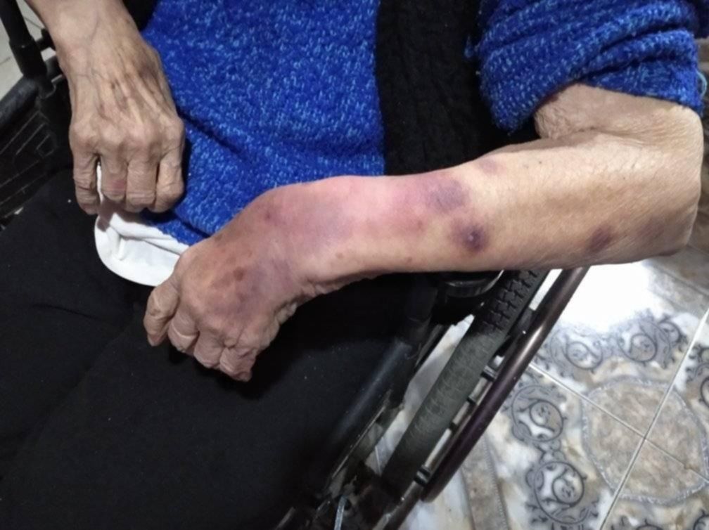Las imágenes difundidas por el propio hijo de la víctima se viralizaron y causaron una fuerte conmoción en la ciudad. En ellas se puede ver las marcas y moretones que dan cuenta del maltrato que sufría la mujer.
