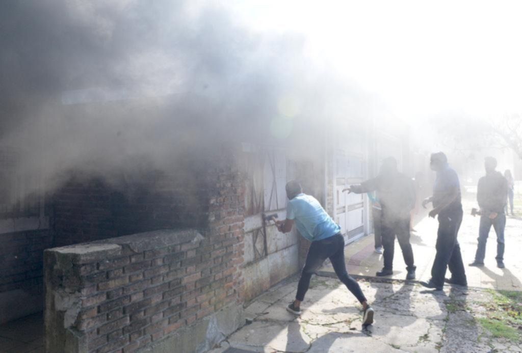 A dos cuadras de la casa de Pelusa se encontraba trabajando el personal de Inspecciones de la Municipalidad, que escuchó el estallido y se acercó a la vivienda que ya estaba cubierta por un denso humo negro.