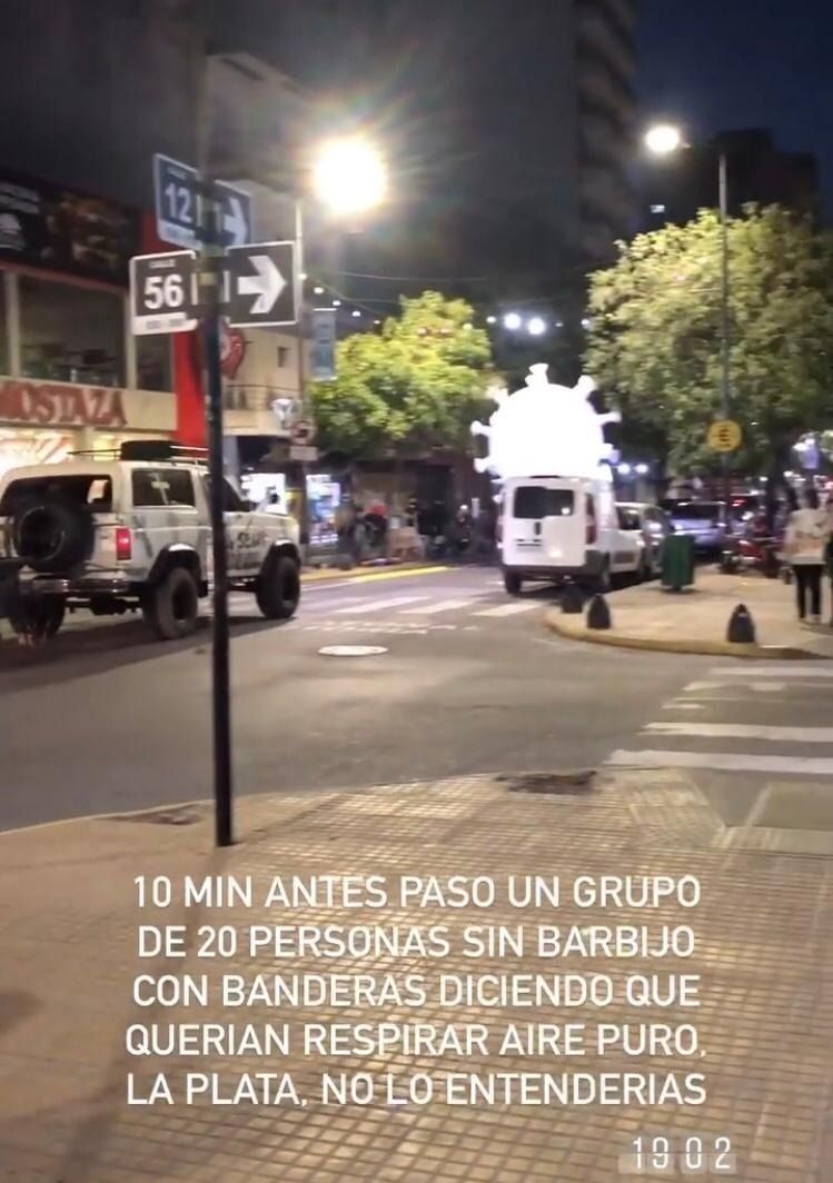Los vehículos que deambularon este sábado a la noche por el centro de la ciudad desconcertaron a quienes se la encontraban: dos camionetas escritas con los mensajes “que mantener la distancia no nos divida” y otra que decía “rebelate”.