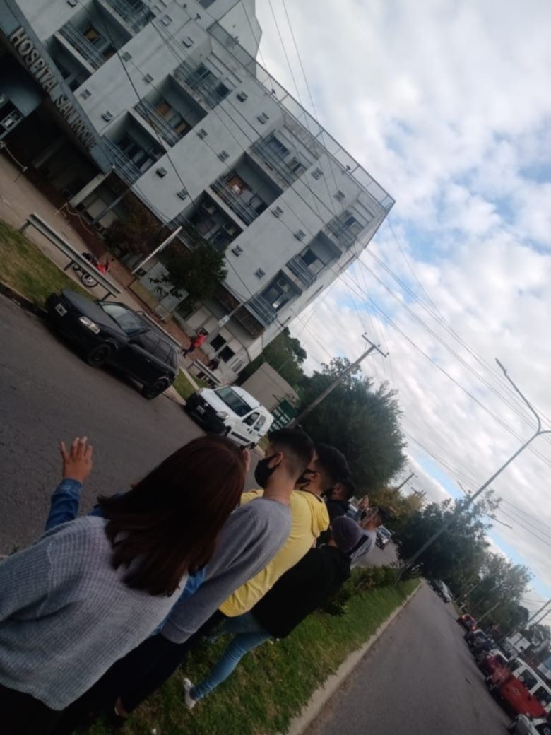 Con barbijos y en hilera, ayudados por un parlante que transmite música, los y las recuperadas visitan las puertas de los distintos hospitales y allí oran por quienes están luchando contra la enfermedad.