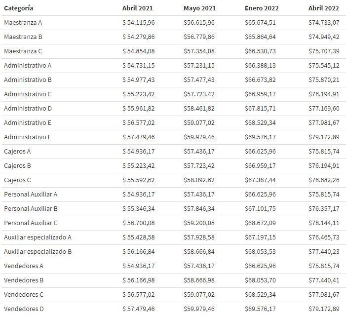Esta semana se firmó la paritaria de los empleados de comercio y se acordó un incremento salarial del 32% sobre los salarios básicos del mes de mayo que se pagará en cuatro tramos no remunerativos y no acumulativos de 8% cada uno.