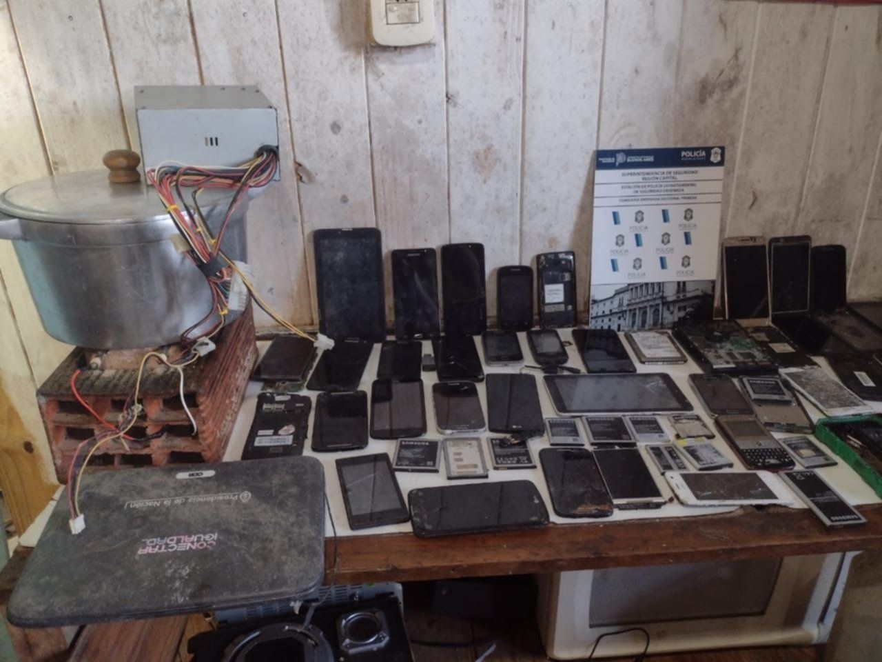 Fuentes oficiales informaron a 0221.com.ar que, tras un allanamiento en su casa, se secuestraron 34 teléfonos de distintas marcas y modelos, dos tablets, tres gabinetes de computadora, una netbook, doce baterías de celulares y equipamiento para desarmar teléfonos.
