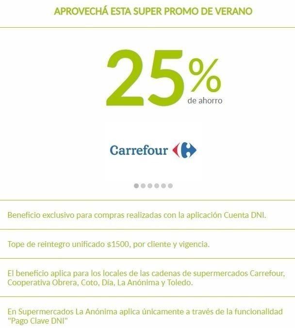 La iniciativa se podrá aprovechar en las cadenas de supermercados Carrefour, Cooperativa Obrera (Bahía Blanca), Coto, Día, Toledo (Mar del Plata) y La Anónima, este último únicamente disponible a través de "Pago Clave DNI", una opción dentro de la aplicación.