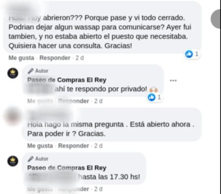 En la publicación, los clientes detallaron que se acercaron hasta el lugar pero se encontraron con las puertas cerradas. El encargado de manejar la cuenta de Facebook contestó uno por uno los mensajes aclarando que la feria permanecía abierto, lo que llamó mucho la atención y generó bronca de los berissenses.