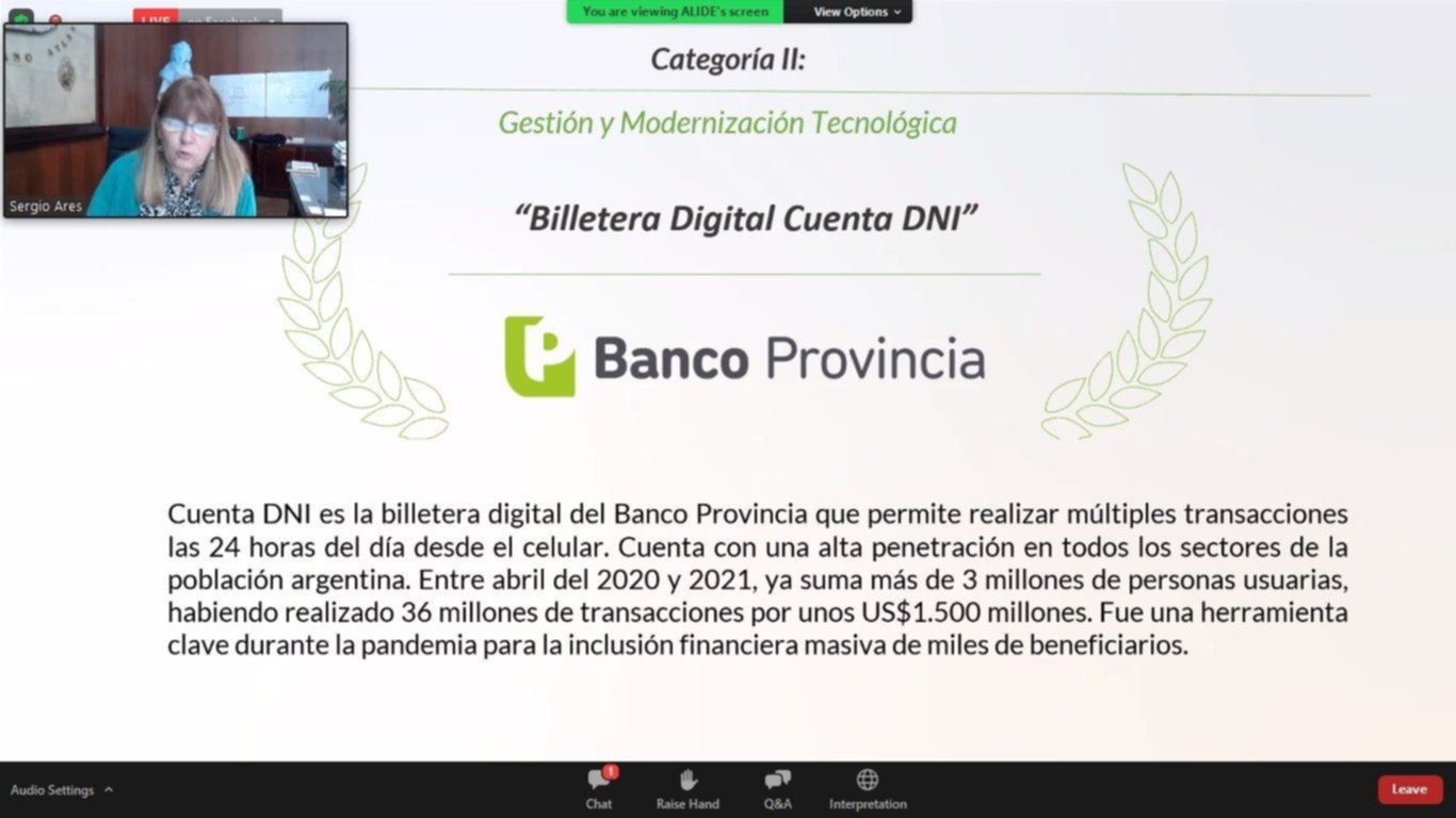 La Cuenta DNI del Banco Provincia recibió un reconocimiento internacional en el marco de la asamblea anual que realiza la Asociación Latinoamericana de Instituciones Financieras para el Desarrollo (ALIDE) en forma virtual y donde participaron los principales bancos de fomento de la región.