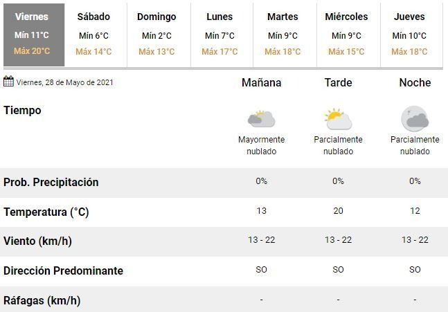 En el Servicio Meteorológico Nacional (SMN) coincidieron con los expertos locales y anticiparon un viernes de entre 11 y 20°C, con un cielo mayormente nublado y vientos leves de entre 13 y 22 km/h.