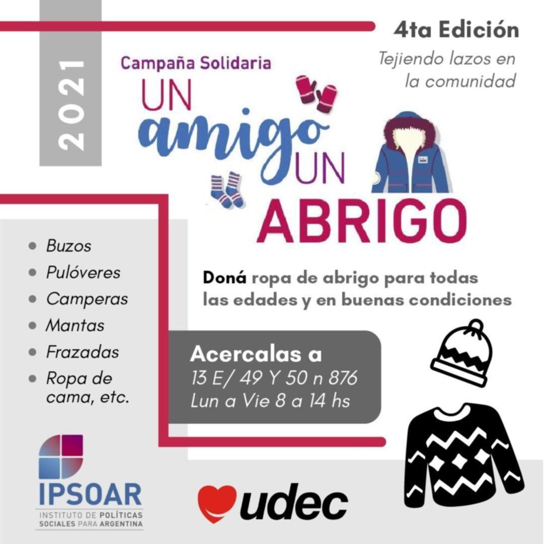 El Grupo UDEC se sumó y lanzó la campaña “Un amigo, un abrigo”, una reconocida colecta que se realiza durante esta época para hacerle frente al frío crudo del invierno y con la intención de contribuir con los que menos tienen.