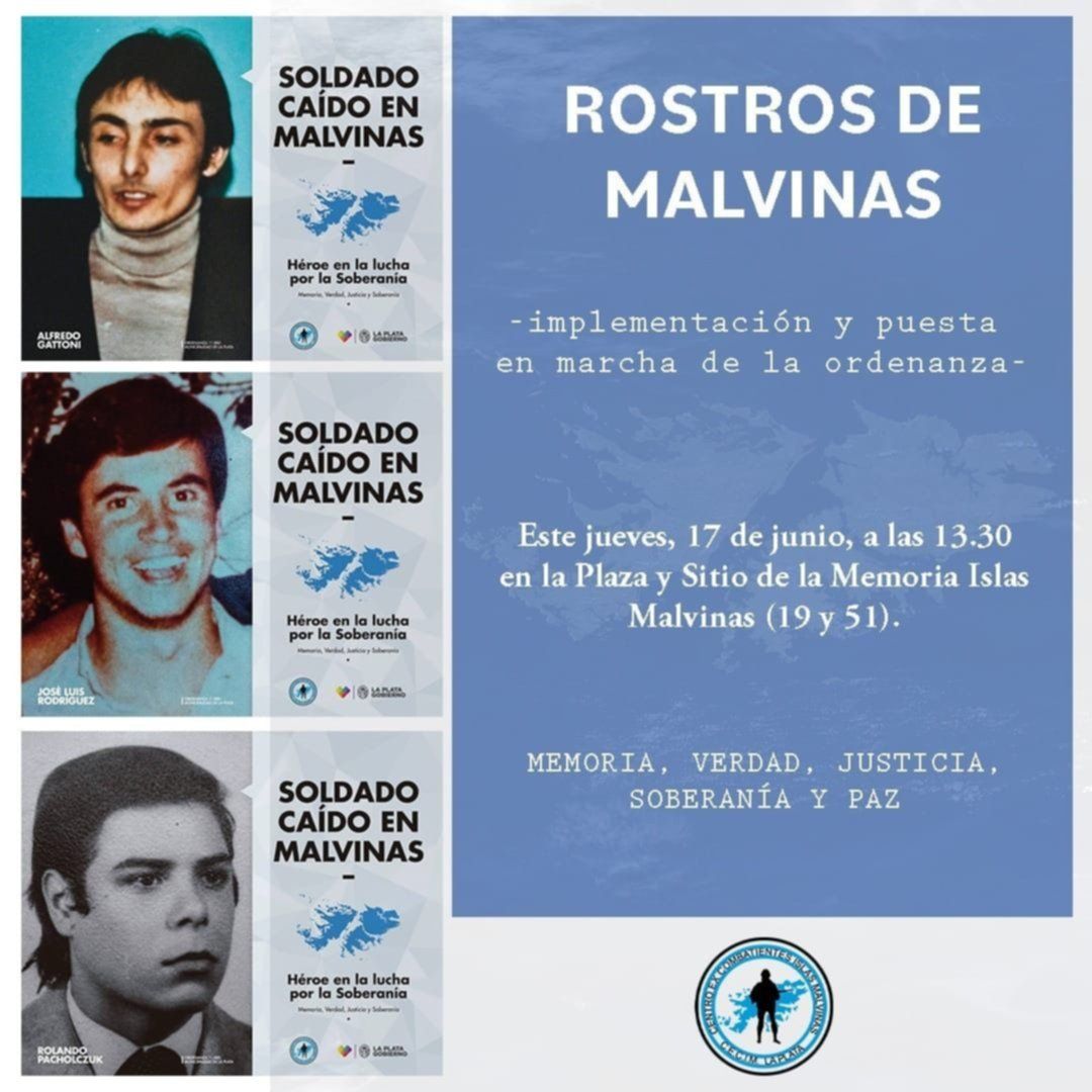 De esta manera, la colocación de los vinilos con los rostros de los caídos en Malvinas se realizará este jueves a las 13.30, en la Plaza Islas Malvinas, donde se levantó un monumento y un centro cultural en la casona del exRegimiento 7 de Infantería que funcionó en ese predio y fue desde donde, en 1982, partieron miles de conscriptos a la Guerra de Malvinas.