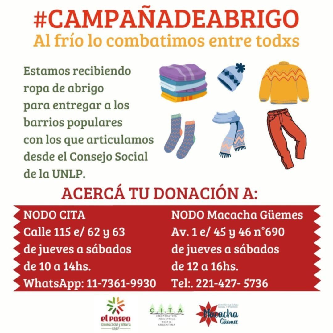 El Consejo Social de la UNLP lanzó una movida solidaria para recolectar ropa de abrigo y donarla en barrios populares de La Plata y la región. La iniciativa es para aportar un granito de arena en los sectores más vulnerables ante por la llegada de una ola polar a la ciudad.