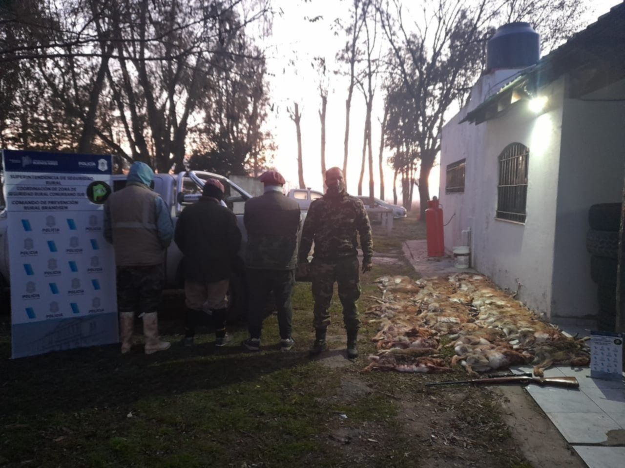 Tres cazadores furtivos fueron sorprendidos en las últimas horas por efectivos de la Policía de la provincia de Buenos Aires cuando se movilizaban con 52 liebres europeas sin vida por la Ruta 2, a la altura del partido de Brandsen.