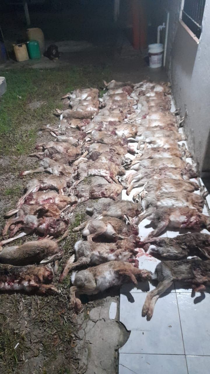 Allí les hallaron las 52 piezas de liebres sin vida que llevaban en la caja del rodado, una carabina calibre 22 y reflectores, entre otros elementos menores. La causa está caratulada infracción a la ley 10.081, con intervención del Ministerio de Desarrollo Agrario de la provincia de Buenos Aires.