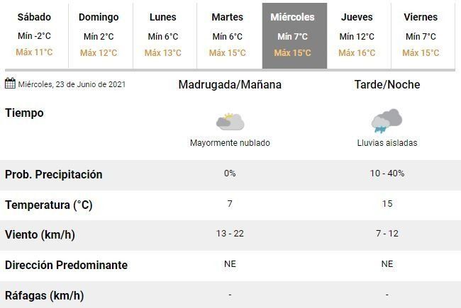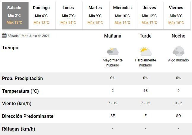 Si bien se espera un leve ascenso de la temperatura durante las tardes de este sábado y el domingo, no se notará la diferencia con respecto a la última semana. El fin de semana será de mañanas heladas y tardes muy frías.