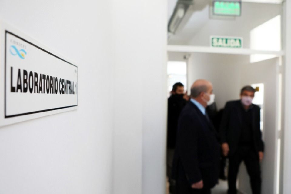 Durante la recorrida por el Instituto de Estudios Inmunológicos y Fisiopatológicos (IIFP- UNLP- CONICET), las autoridades estuvieron acompañados por los investigadores a cargo del proyecto de diseño y elaboración de la vacuna, Guillermo Docena y Omar Azzaroni.