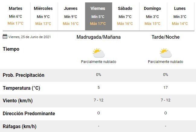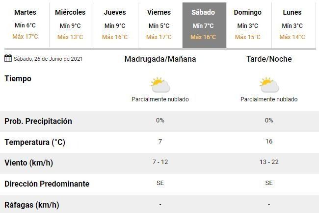 Finalmente, para el fin de semana se esperan dos días de buen clima en La Plata, con mínimas de 7 y 3°C y máximas de 16 y 15°C para el sábado y el domingo, respectivamente.