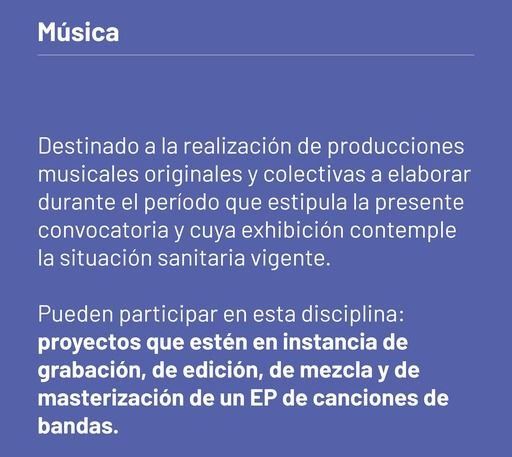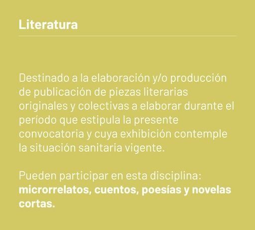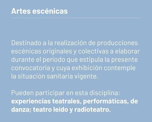 Por el contexto sanitario, la edición 2021 tiene por objetivos incentivar la producción de colectivos, grupos y compañías para las áreas de Artes Visuales, Música, Diseño, Artes Escénicas, Artes Audiovisuales y Literatura.