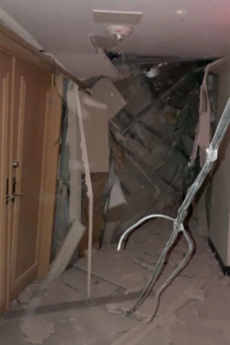 El hombre aseguró que si hubiera vivido en el departamento siguiente no se habría salvado. Antes de escapar, llegó a sacar una foto en el pasillo común del edificio, justo frente a su puerta. El camino estaba completamente bloqueado por escombros impidiendo el paso hacia el resto de las unidades del séptimo piso.