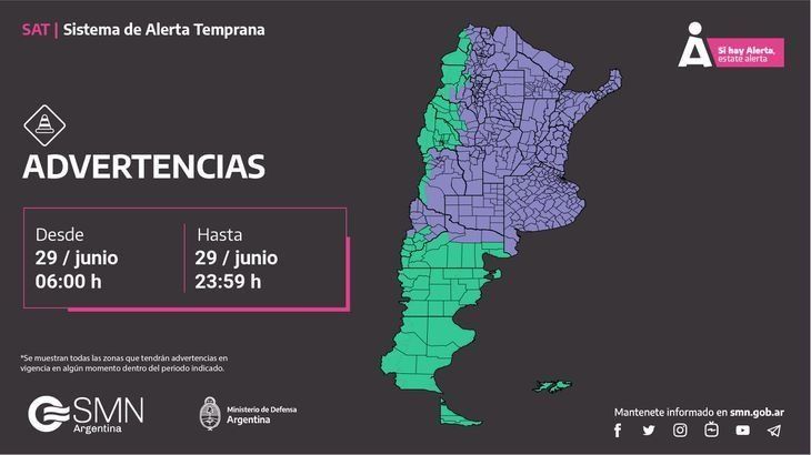 "Esta es una irrupción de aire frío, muy marcada, una de las más intensas que tuvimos hasta ahora en el año, que vino acompañada el domingo de precipitaciones en forma de nieve en algunos lugares del noroeste de Buenos Aires, sudoeste de Santa Fe, las sierras de Córdoba y de San Luis, y eventualmente en algunos sectores del noroeste argentino durante la mañana del lunes", indicaron desde el SMN, respecto al alerta por la ola polar.
