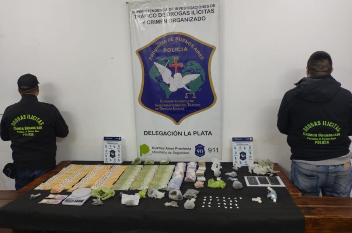Dos hombres dedicados a la venta de drogas, que utilizaban como pantalla una gomería de La Plata, fueron detenidos en las últimas horas en Altos de San Lorenzo, en medio de un allanamiento realizado por la Policía de la provincia de Buenos Aires.