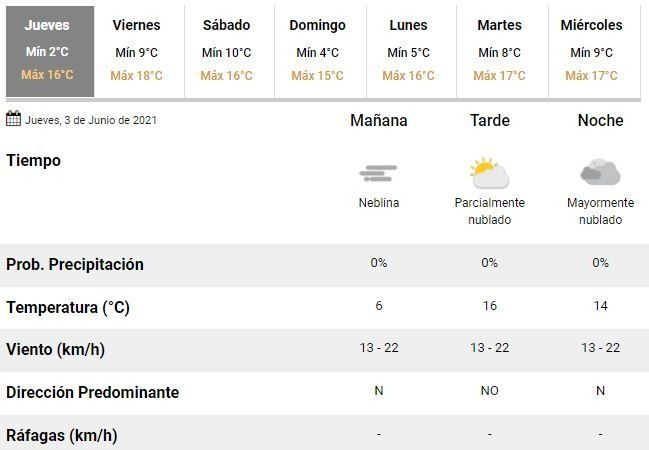 De acuerdo con los especialistas, el jueves transcurrirá con buen tiempo aunque con un cielo mayormente nublado y algo de viento, de hasta 22 km/h; soplando desde el norte y el noroeste.