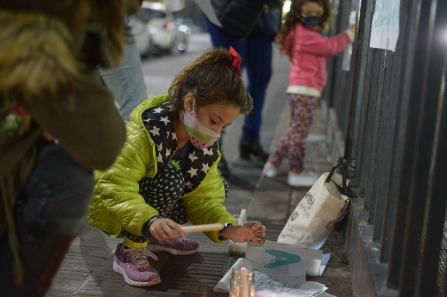 Con carteles y velas en recipientes metálicos o de vidrio, se manifestaron otra vez frente a la Gobernación con mensajes por la reapertura de las escuelas, aún en el momento más complejo de la pandemia de coronavirus.