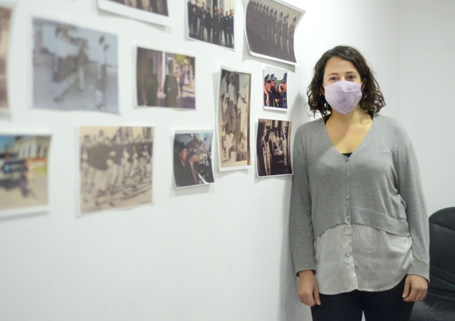 “La impronta que se le da a la cuestión de género en el Ministerio es que sea transversal. Queremos formar, escuchar y pensar de qué forma podemos aportar a los espacios de formación, no solamente en línea con que la policía sea cada vez más profesional en el abordaje, sino también con el abordaje de las violencias hacia adentro de la policía”, explica a 0221.com.ar la directora del área de Género y Derechos Humanos y licenciada en Ciencias Políticas Agustina Baudino. En su despacho hay fotos dispuestas a modo de “mini museo” que retratan la historia de las mujeres policías a lo largo de los años y también una bandera del Orgullo LGBT+. Al espacio se accede atravesando un patio interno en la sede central del Ministerio, que frecuentan cientos de trabajadores y funcionarios diariamente y que está custodiado por una imponente escultura de la Virgen María.