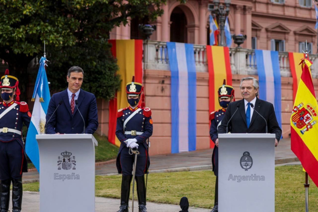 Por su parte, Pedro Sánchez destacó el aporte de Fernández en relación a declarar las vacunas como un bien global y aseguró que "España va a estar de la mano de la Argentina" en el reclamo de hacer una distribución "solidaria" del fármaco a nivel mundial.