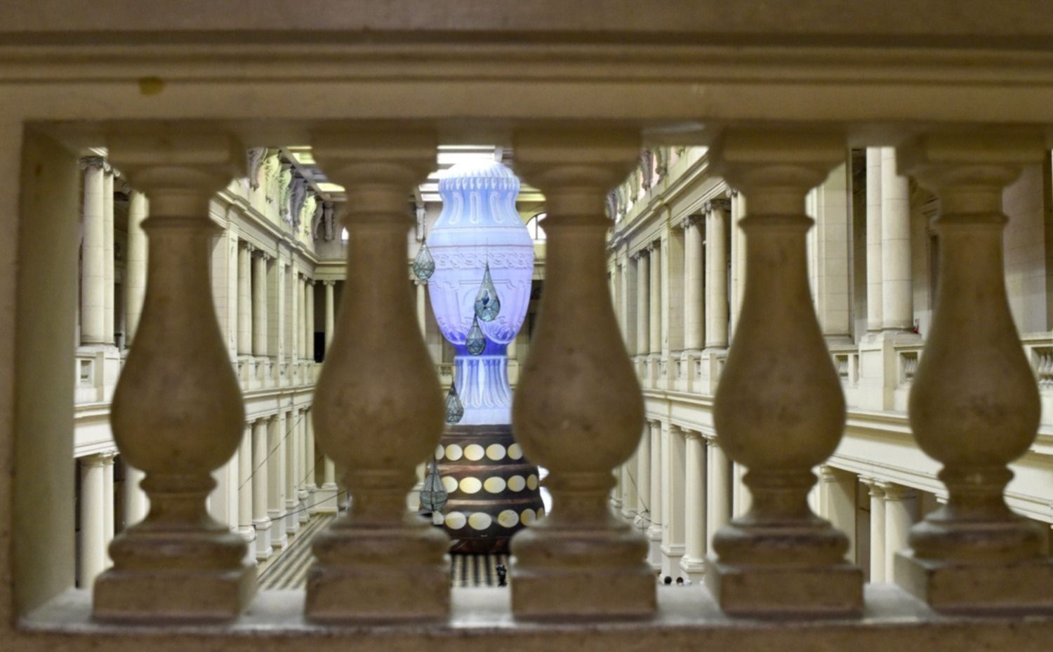Si bien por las restricciones y cuidados sanitarios establecidos por la pandemia, el Pasaje Dardo Rocha se encuentra cerrado al público, Mañanes fue invitado para que despliegue este impactante inflable en el salón principal.