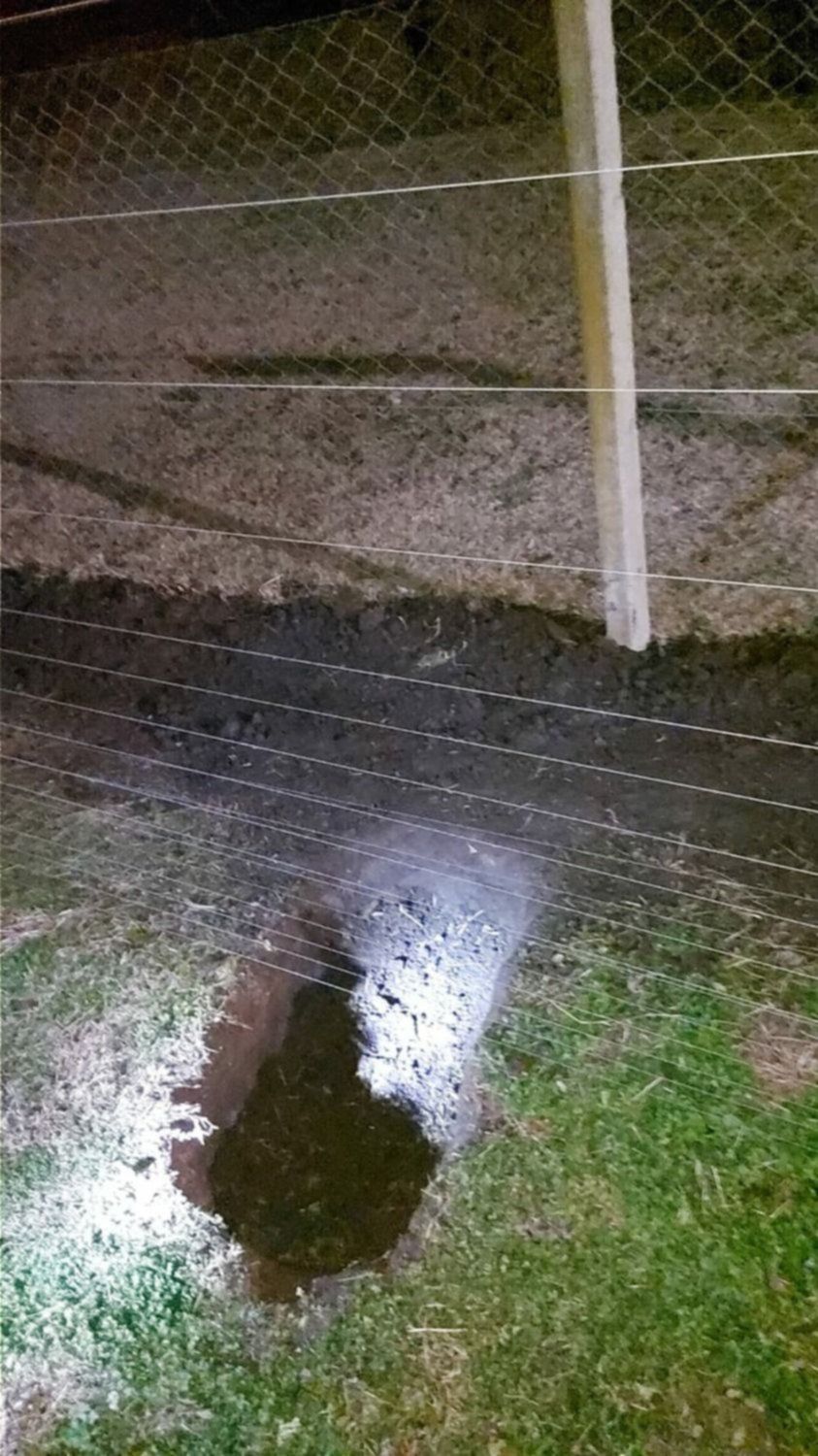 Minutos más tarde, los vecinos dieron aviso al 911 y los efectivos acudieron para corroborar que los ladrones habían entrado y salido por la rotura del alambrado y el pozo. Además, hallaron una pala rota que fue secuestrada para su posterior peritaje, el cual podría ser de ayuda a las autoridades para identificarlos.
